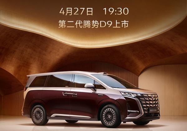 官方公布,新款腾势D9将4月27日正式上市。新车已经开启预售,共推出6款车型,预售价38.98-48.98万。