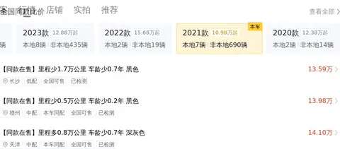 车源地和上牌地都在临沂。2021年10月首次上牌,在此期间过户0次。新车含税价为23.41万,而现在的二手车报价是13.18万,相当于开近4年便宜了10.23万。