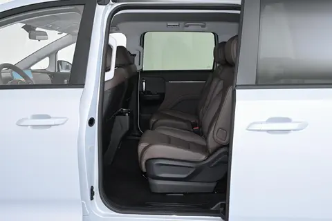 车身侧面线条流畅,悬浮式车顶设计拉长了视觉比例,不会显得臃肿,滑门轨道隐藏在车顶线条下,关闭后几乎看不见,既好看又能保证密封性,雨天行驶的时候不会漏水漏风,这点做得很到位。车身钣金工艺也不错,车门开关的力度均匀,缝隙规整,品控方面说得过去,不用太担心小毛病。