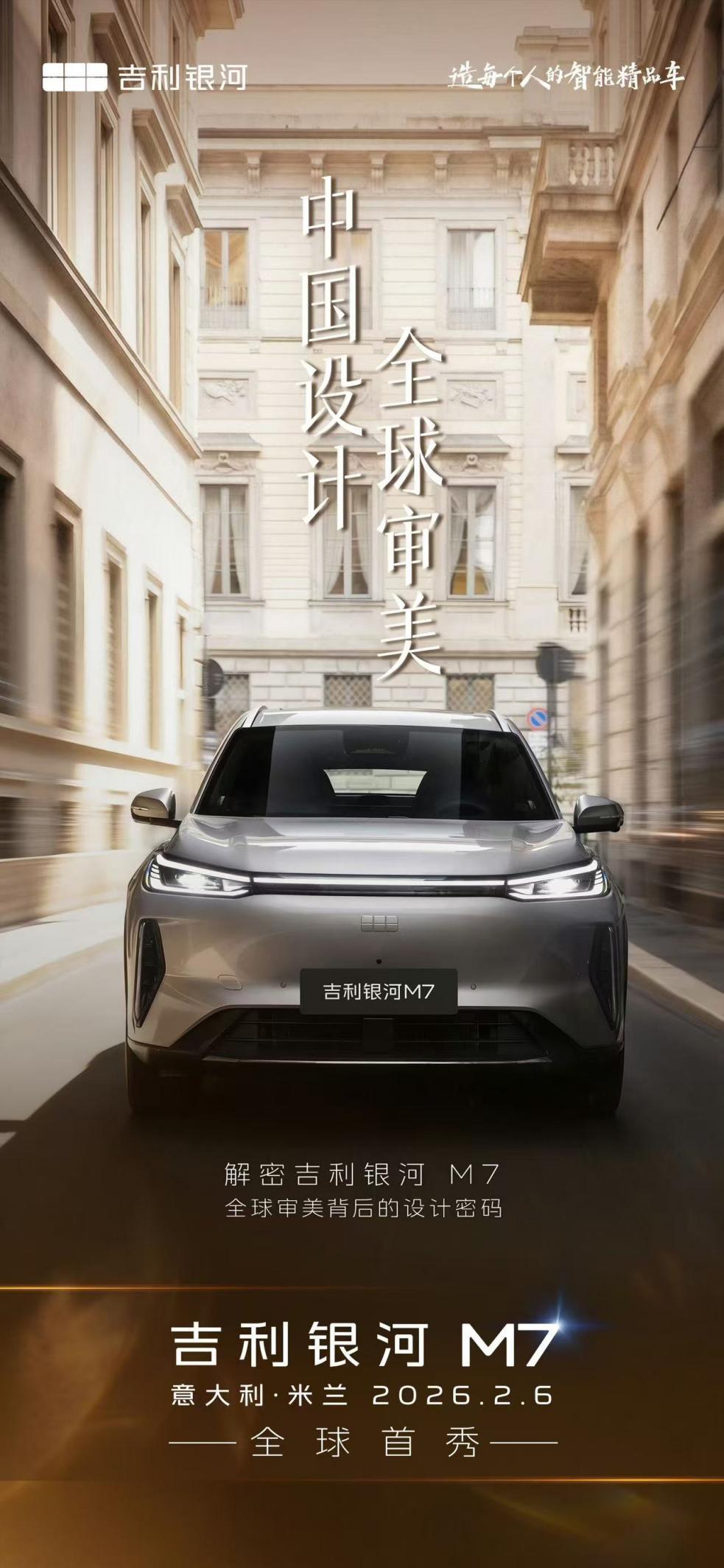 银河 M7 采用吉利银河 M 系列的家族式设计,前脸搭配星环式贯穿灯组与封闭式格栅,两侧导流槽改成竖置样式,还融入了熏黑饰件和镀铬条,散热口与进气口的造型也更显简约运动。
