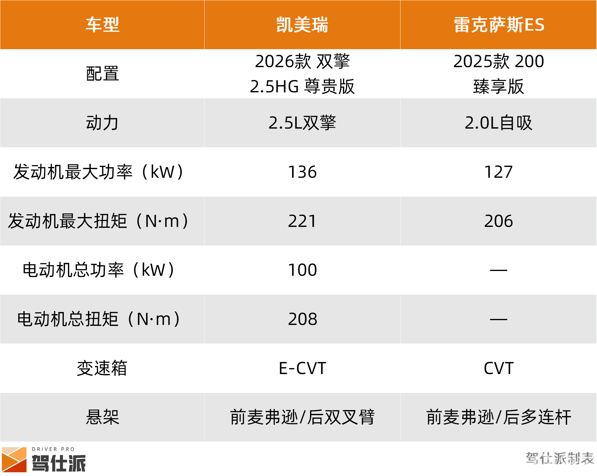 动力部分,都是丰田自己的东西,凯美瑞2.5L双擎在数据上,必然整体优于雷克萨斯ES 200的2.0L自吸。但是,实车体验时,也需要注意两个方面: