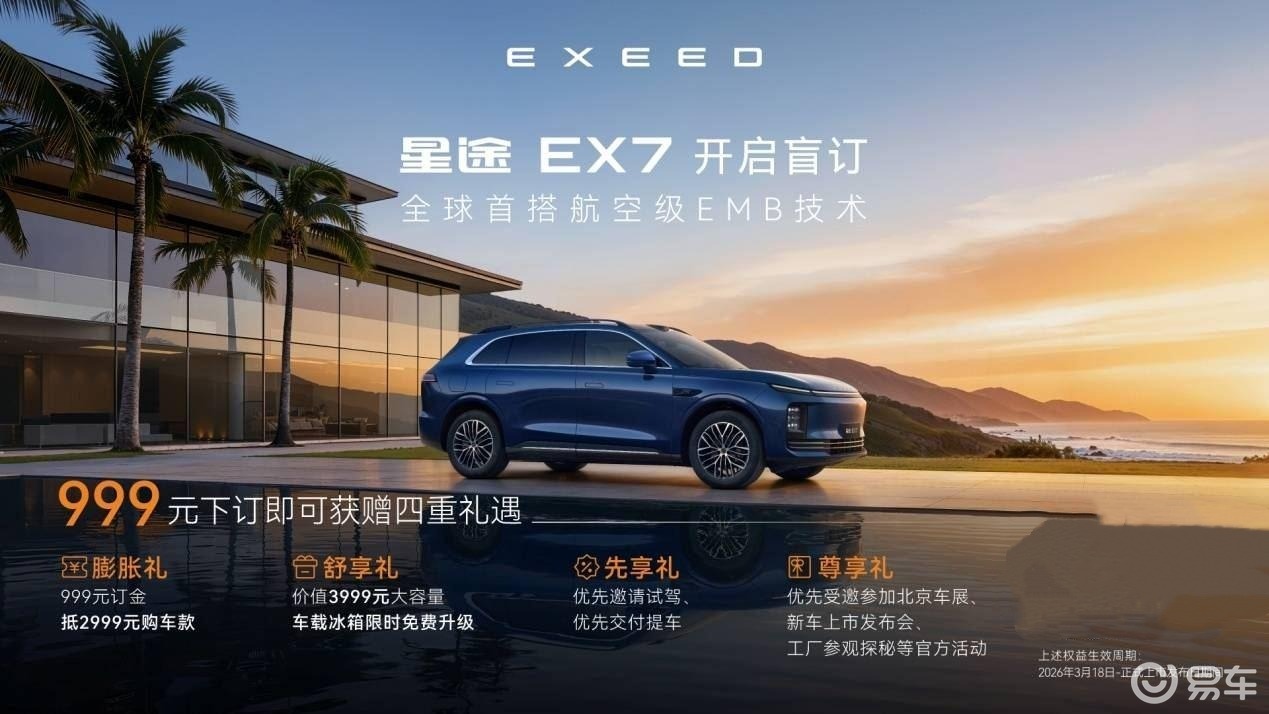 即日起,用户支付999元订金,即可解锁膨胀礼、舒享礼、先享礼、尊享礼四重专属权益,包括999元订金抵2999元购车款、限时赠送价值3999元大容量宽温域车载冰箱、优先品鉴试驾、交付提车以及优先受邀参加北京车展、新车上市发布会、工厂参观探秘等专属权益,开启品质用车新体验。