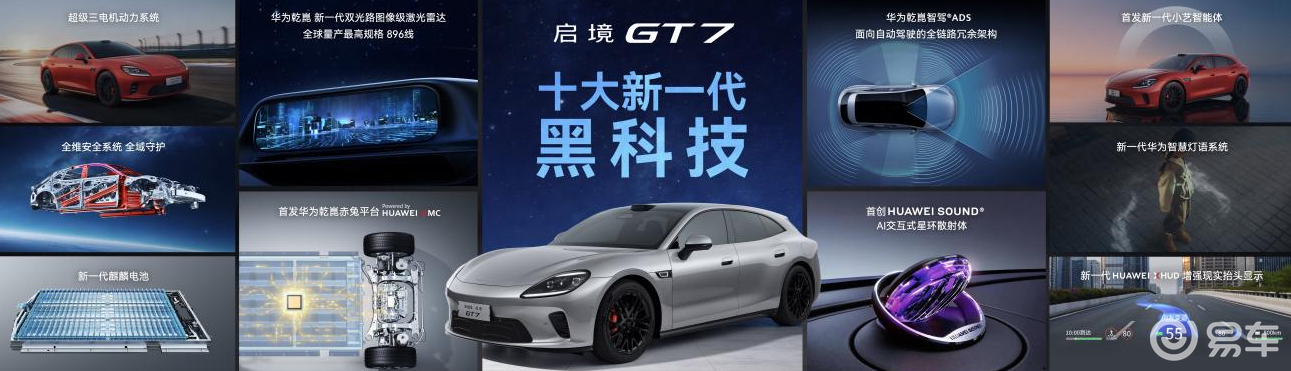 在智能层面,启境 GT7 首发十大新一代黑科技,成为华为乾崑全栈技术赋能的核心载体。辅助驾驶领域,新车基于面向未来自动驾驶的全链路冗余架构打造,搭载华为乾崑智驾 ® 系统,配备全球量产最高规格的 896 线新一代双光路图像级激光雷达,以超高清、超远距的环境感知能力全面升级主动安全防护。