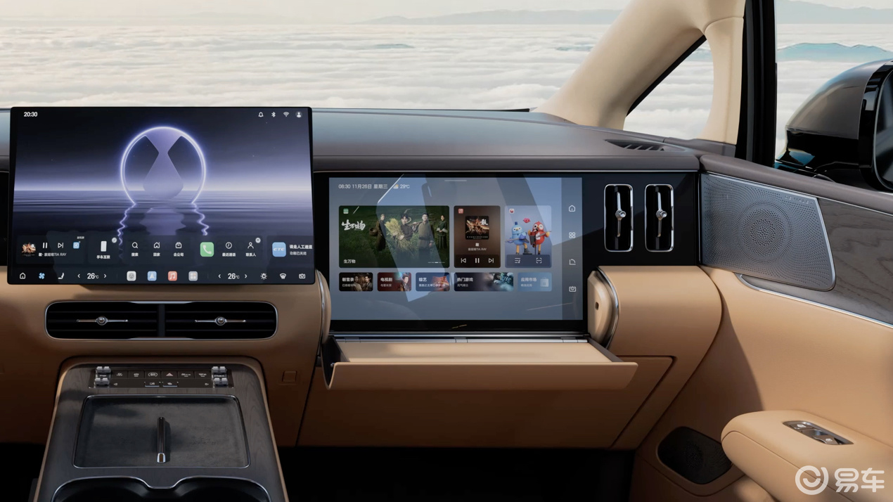 内饰采用全新设计语言,以百万级豪华标准提升座舱体验,标配怀挡重塑奢阔格局;NAPPA真皮座椅搭配精致绗缝工艺,营造旗舰级尊崇氛围。中排升级为零压云绒座椅,独创丝柔悬浮层带来极致柔软与包裹感,配合按摩、电动调节等功能,实现头等舱级舒适享受。副驾配备开合智能屏,满足多场景娱乐需求,翻下大屏即可沉浸观影,贴心小桌板更可收纳太阳镜、耳机等随身物件,细节之处见豪华。
