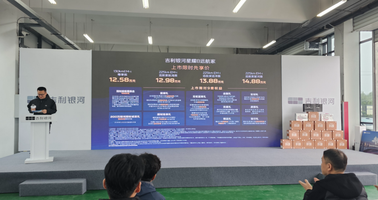 继全球上市后,4月8日,郑州迎来了吉利银河星耀8远航版。新车搭载自研28.3kWh神盾金砖电池,纯电续航提升至225km,同时配备带激光雷达的千里浩瀚辅助驾驶H5方案,配备1个激光雷达、3个毫米波雷达、11个高清摄像头及12个超声波雷达,27个感知单元实现360°感知覆盖。该系统支持城市NOA领航辅助驾驶,可覆盖导航辅助、自主变道等19大高频驾驶场景,同时智能泊车功能可识别300多种车位类型,支持无划线区域自定义泊入。